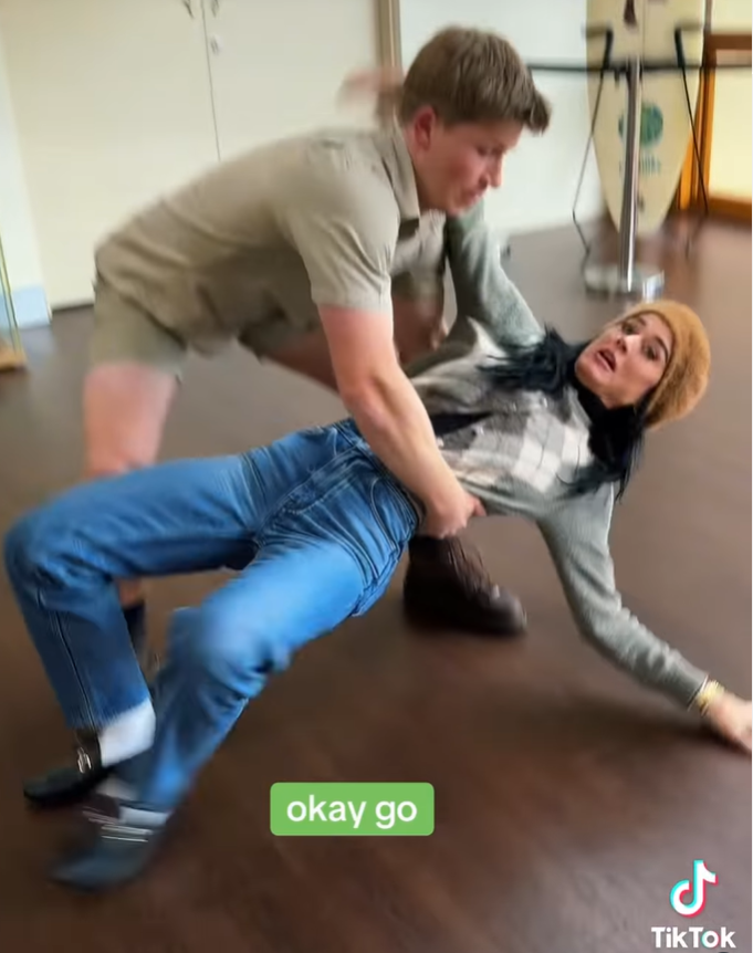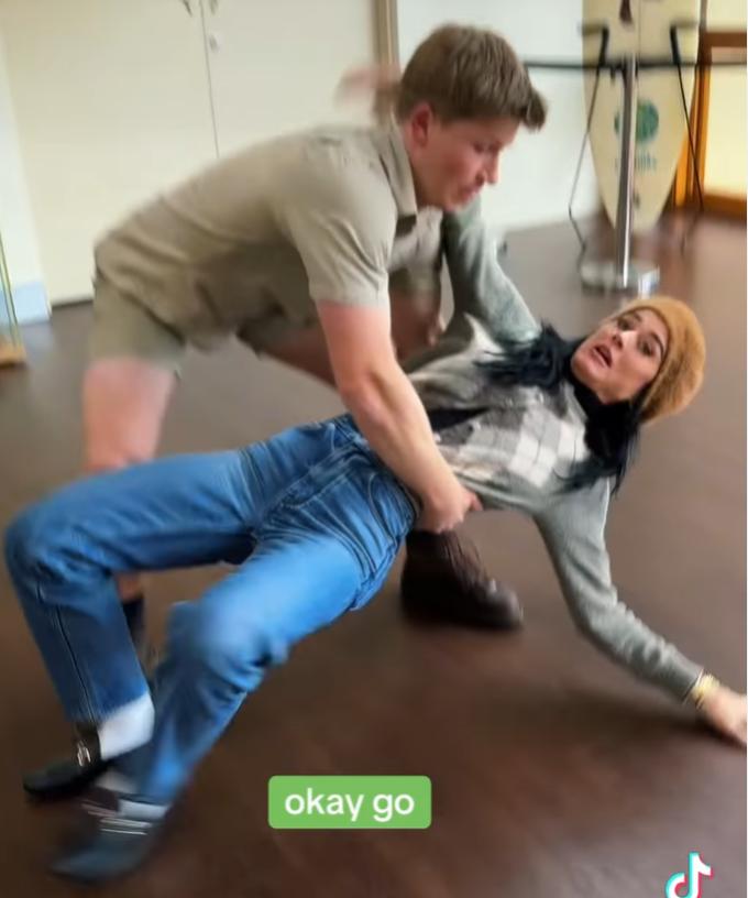 “Maybe stick with the animals,” Perry quipped as Irwin helped her up.