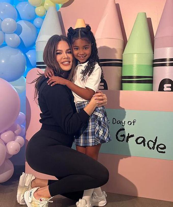 The Kardashian sister shared the special moment of her and True, who she shares with ex Tristan Thompson, standing in front of an extravagant balloon garland and a box of crayons with the text ‘First Day of First Grade’.