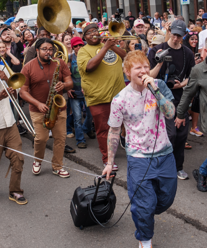 Ed Sheeran surprised fans by playing an impromptu concert on the streets of New Orleans, where he performed his newest single, ‘Azizam’.