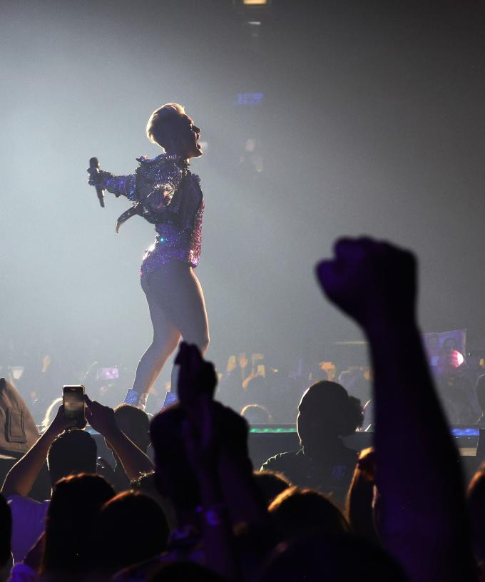 “When I was a little girl, my mom grew up in Atlantic City and I used to go down to the Ocean City Boardwalk with my ten dollars and I would make a demo tape… I would make a little cassette tape and imagine it was my demo for the record company,” Pink told the crowd at Great American Ballpark in Ohio.