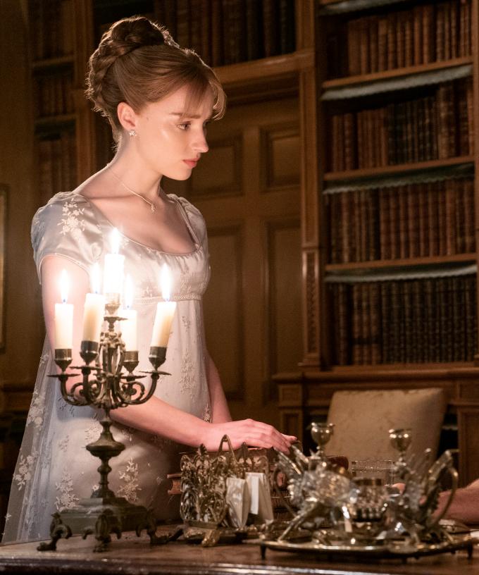 Bridgerton is a romantic, scandalous, and clever series that celebrates the timelessness of enduring friendships, families finding their way, and the search for a love that conquers all. The series also stars Adjoa Andoh (Lady Danbury), Lorraine Ashbourne (Mrs. Varley), Harriet Cains (Philipa Featherington), Bessie Carter (Prudence Featherington), Shelley Conn (Mary Sharma), Nicola Coughlan (Penelope Featherington), Phoebe Dynevor (Daphne Basset), Ruth Gemmell (Violet Bridgerton), Florence Hunt (Hyacinth Bridgerton), Martins Imhangbe (Will Mondrich), Claudia Jessie (Eloise Bridgerton), Calam Lynch (Theo Sharpe), Luke Newton (Colin Bridgerton), Golda Rosheuvel (Queen Charlotte), Luke Thompson (Benedict Bridgerton), Will Tilston (Gregory Bridgerton), Polly Walker (Portia Featherington), Rupert Young (Jack), and Julie Andrews as the voice of Lady Whistledown. The series is inspired by Julia Quinn’s novels.