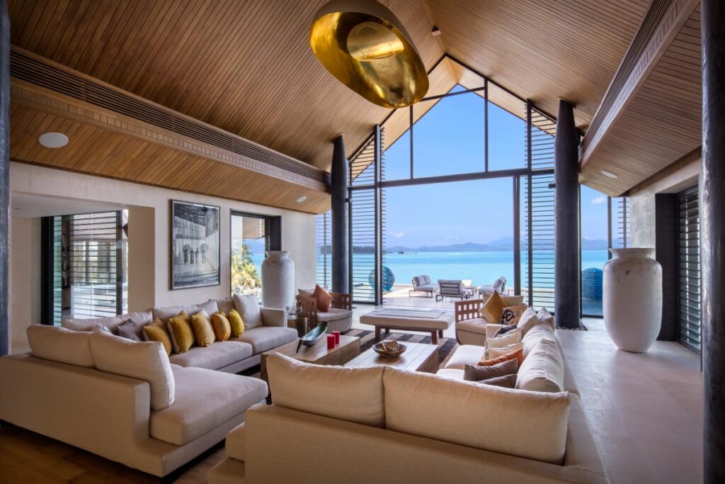 The property features sweeping ocean views, an infinity pool that melts into the Andaman Sea, and stunning modern design with Thai influences. Think private beach access, lush gardens, and interiors that blend sleek architecture with handcrafted details.
