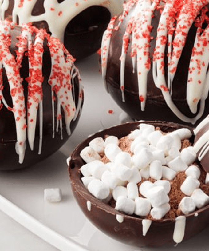 If you’re not familiar, a Hot Chocolate Bomb is a little ball of chocolatey goodness you drop into a mug of hot milk and watch as it melts, revealing the delicious marshmallows and deliciousness hidden inside.