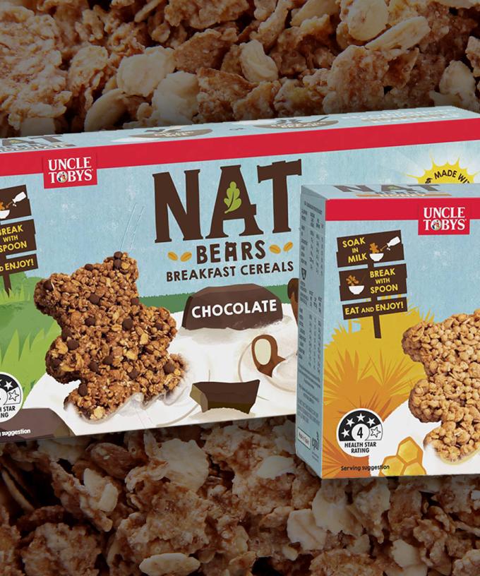 Introducing Uncle Tobys ‘NAT’ Bears Breakfast Cereals. Made from natural whole grain with a cheeky bit of dark chocolate (or honey) these little guys will stop any breakfast-time protests.