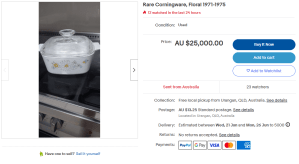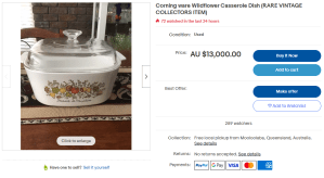 Off the back of this news the price of Corningware pieces on eBay have skyrocketed to as much as $25,000.