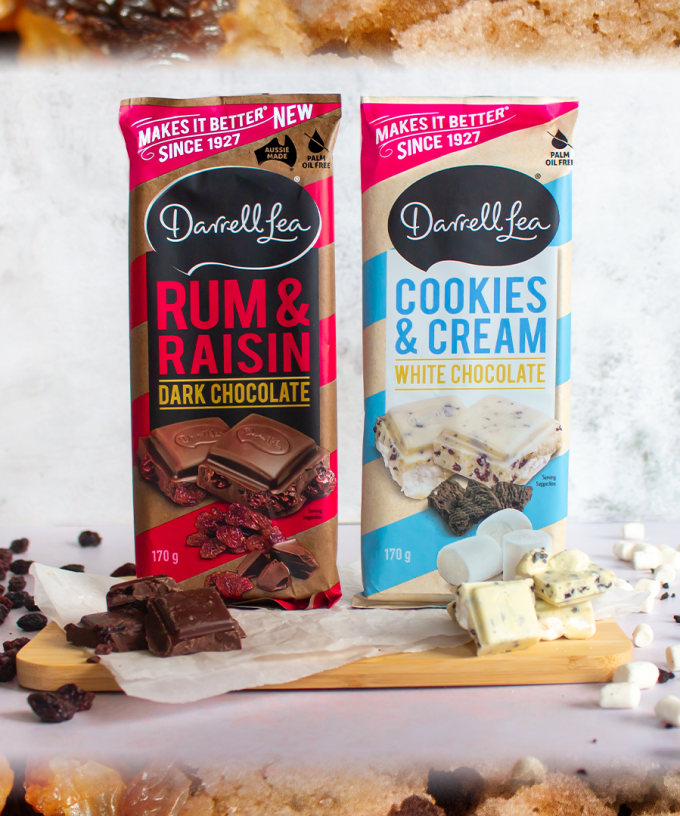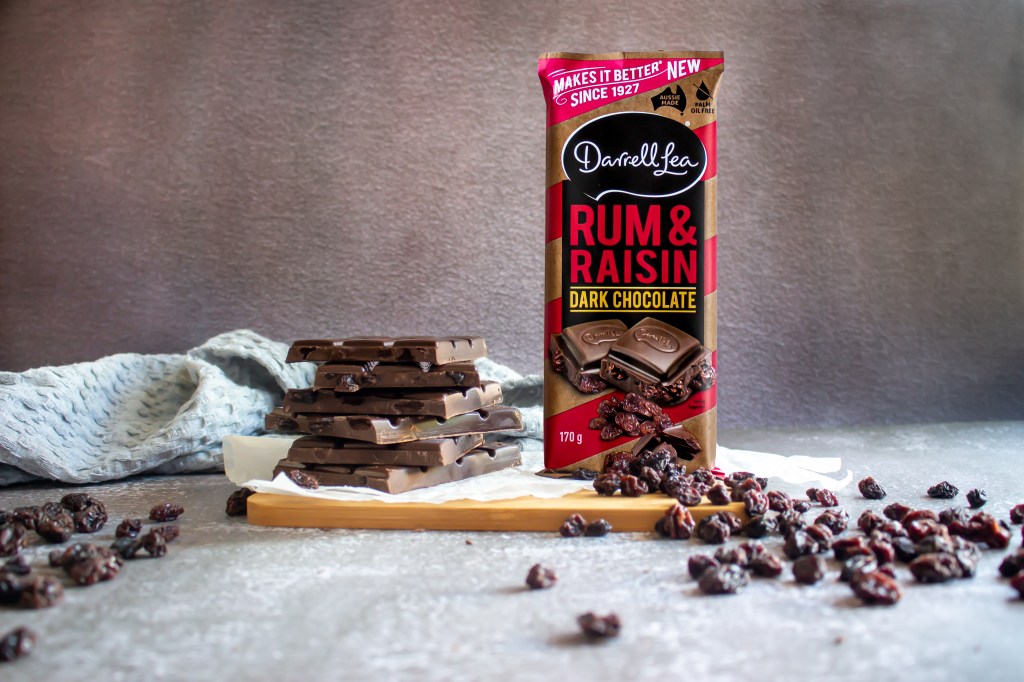 Darrell Lea didn’t stop there though, with a Dark Chocolate Rum & Raisin Block made with 47% cocoa dark chocolate, alongside a tinkle of juicy rum-infused raisins, their claiming has the ‘perfect balance of bitter & sweet…’