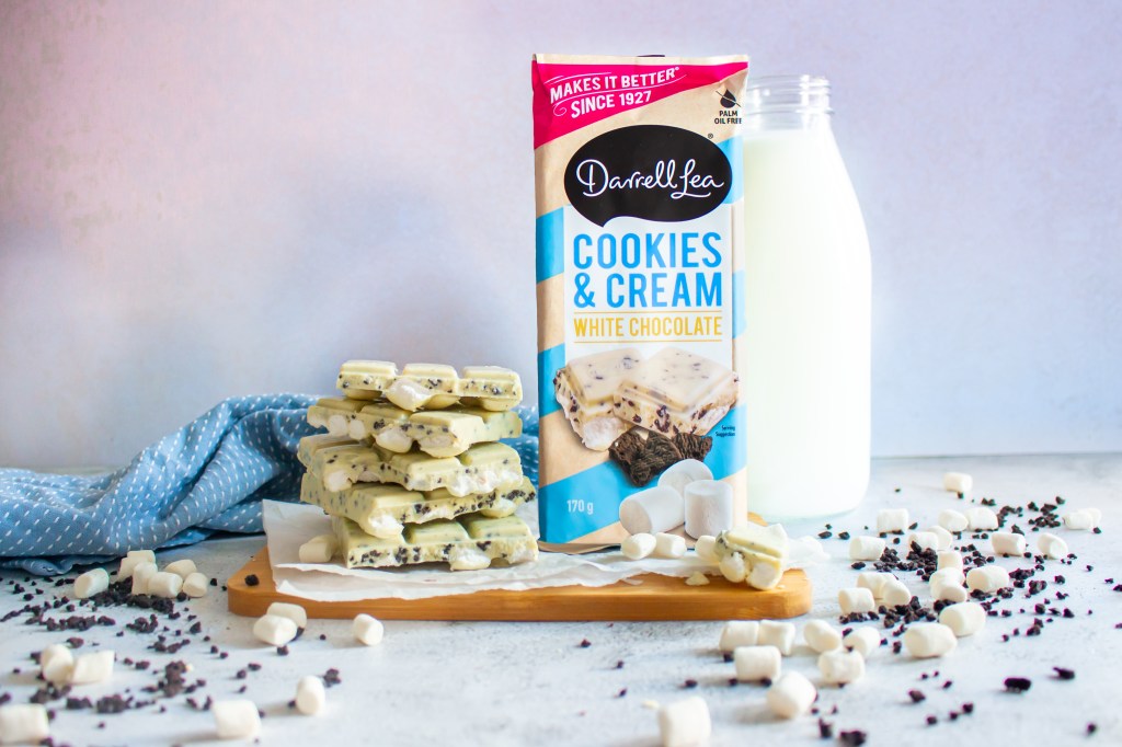 They’re adding another BRAND NEW Cookies & Cream Block with a VERY surprising twist… Boasting smooth & silky Darrell Lea white chocolate, WRAPPED WITH FLUFFY MARSHMALLOWS (a revolutionary addition in the cookies and cream space right?) and of course, chocolate cookie pieces! Too much? Absolutely NOT!