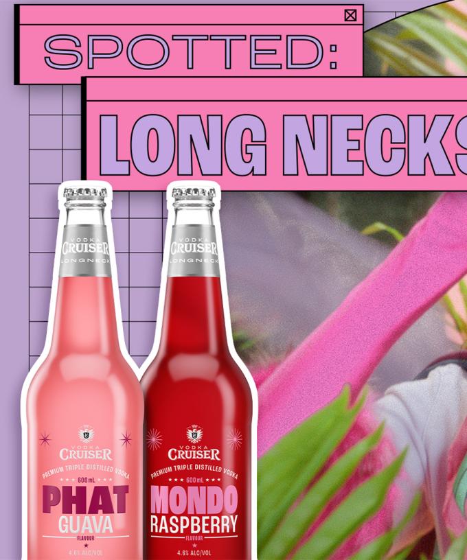 Unleashing the double-sized, 600mL Long Necks into the wild, the hyped beverage is available in two cult-classic Vodka Cruiser flavours – Lush Guava and Wild Raspberry.