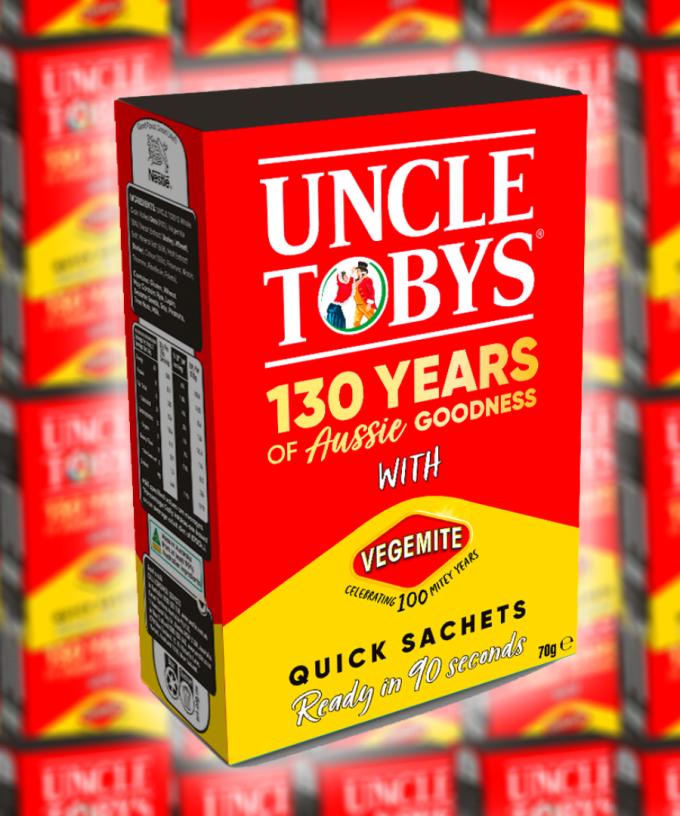 To celebrate their 130th anniversary, Uncle Tobys are asking Aussies whether they would eat a version of their quick oats sachets with Vegemite flavouring?