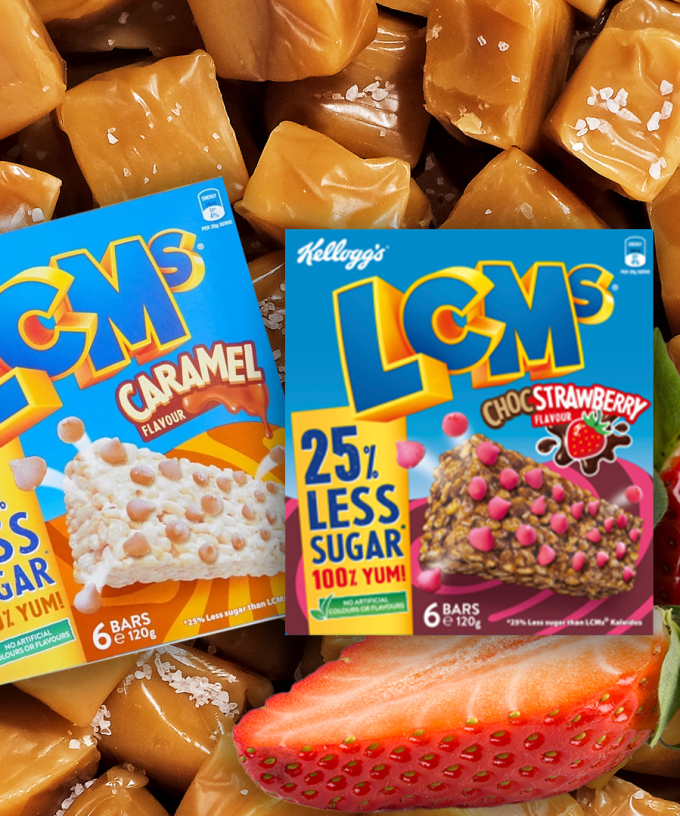 Adding to the Choc Chip & Rainbow (Kaleidos) flavours we grew up with; the new Caramel & Choc Strawberry flavoured LCMs!