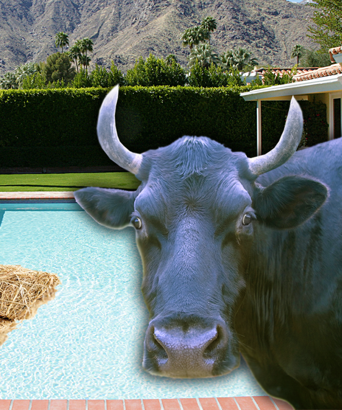 Yes, it seems it’s not only Mr. Smith that would do anything for publicity; The Bullock (the name they use for a young desexed male cow) decided to go for a cheeky piddle in a nearby swimming pool.
