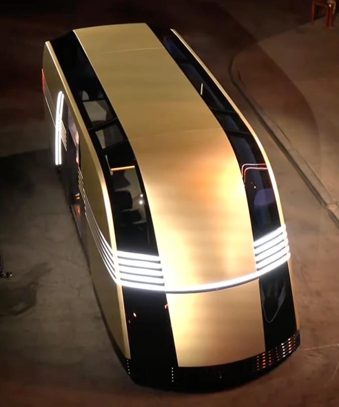 Attendees were stunned when Musk unexpectedly announced the new wild-looking Robovan – a self-driving, electric passenger van which can carry up to 20 people.