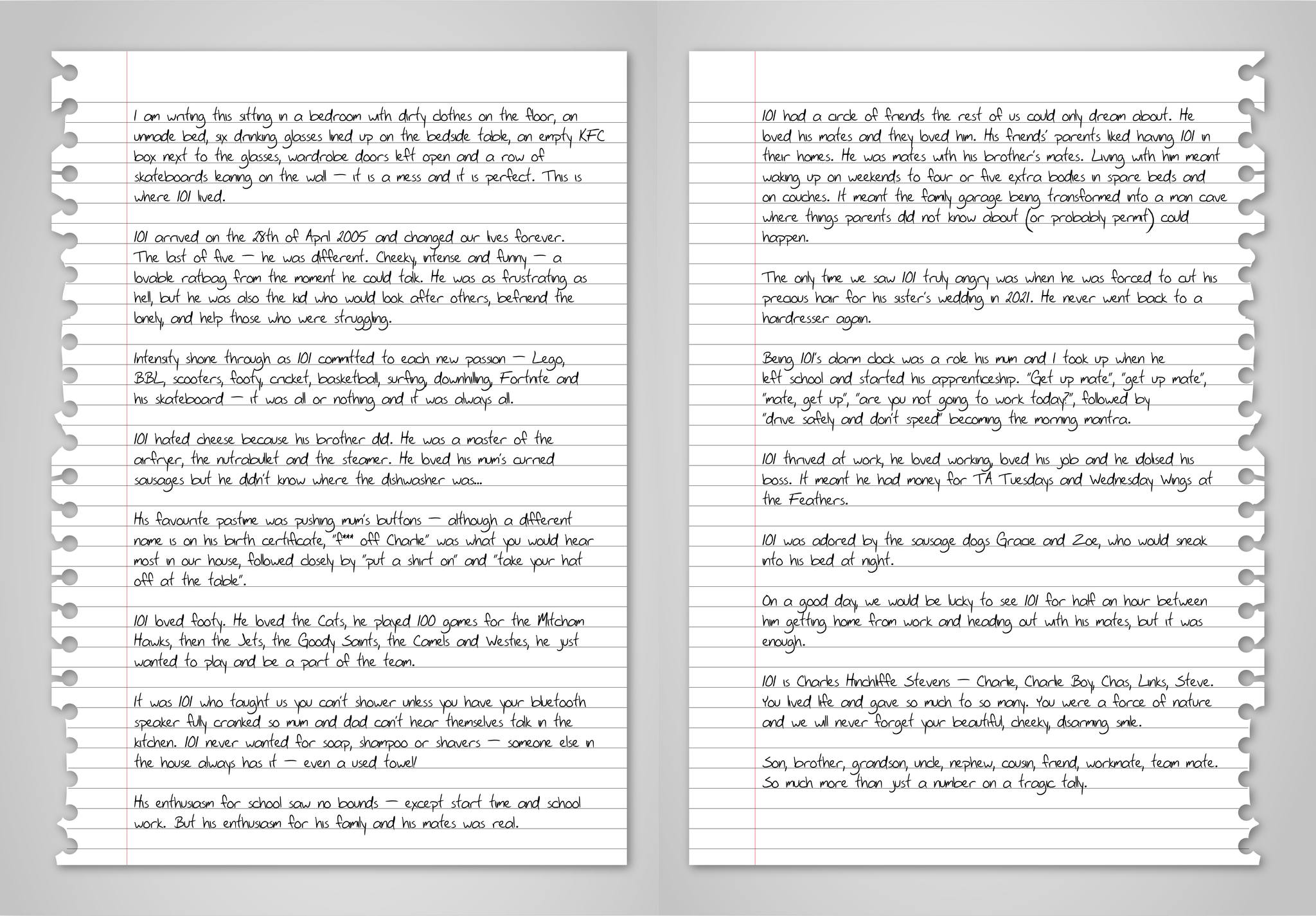 Reflecting on Charlie’s diverse passions, from Lego and sports like BBL, scooters, footy, and cricket to unconventional interests like downhilling, Fortnite, and skateboarding, the letter portrayed him as someone who embraced each new endeavor with unwavering intensity.